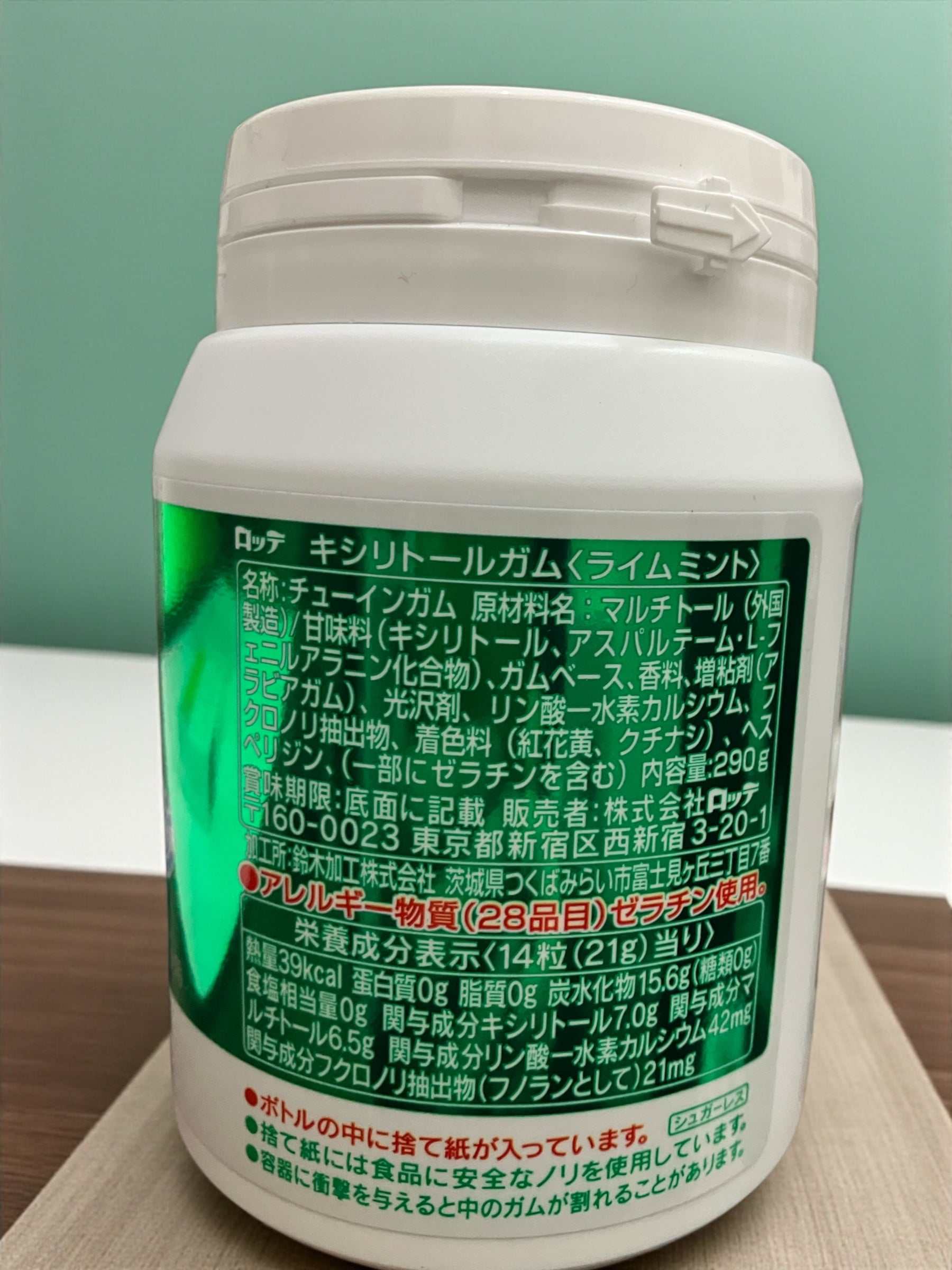 キシリトール ライムミント ガム 290g 大容量は、消費者庁認定の特定保健用食品です。爽やかなライムミント風味で、むし歯の原因にならないキシリトールとマルチトールを使用。さらにキシリトール、フクロノリ抽出物、リン酸一水素カルシウムが歯の再石灰化を促進し、歯を丈夫で健康に保ちます。毎日の生活に取り入れるだけで、手軽に歯の健康をサポート。大容量290gで、ご家族みんなでお楽しみいただけます。