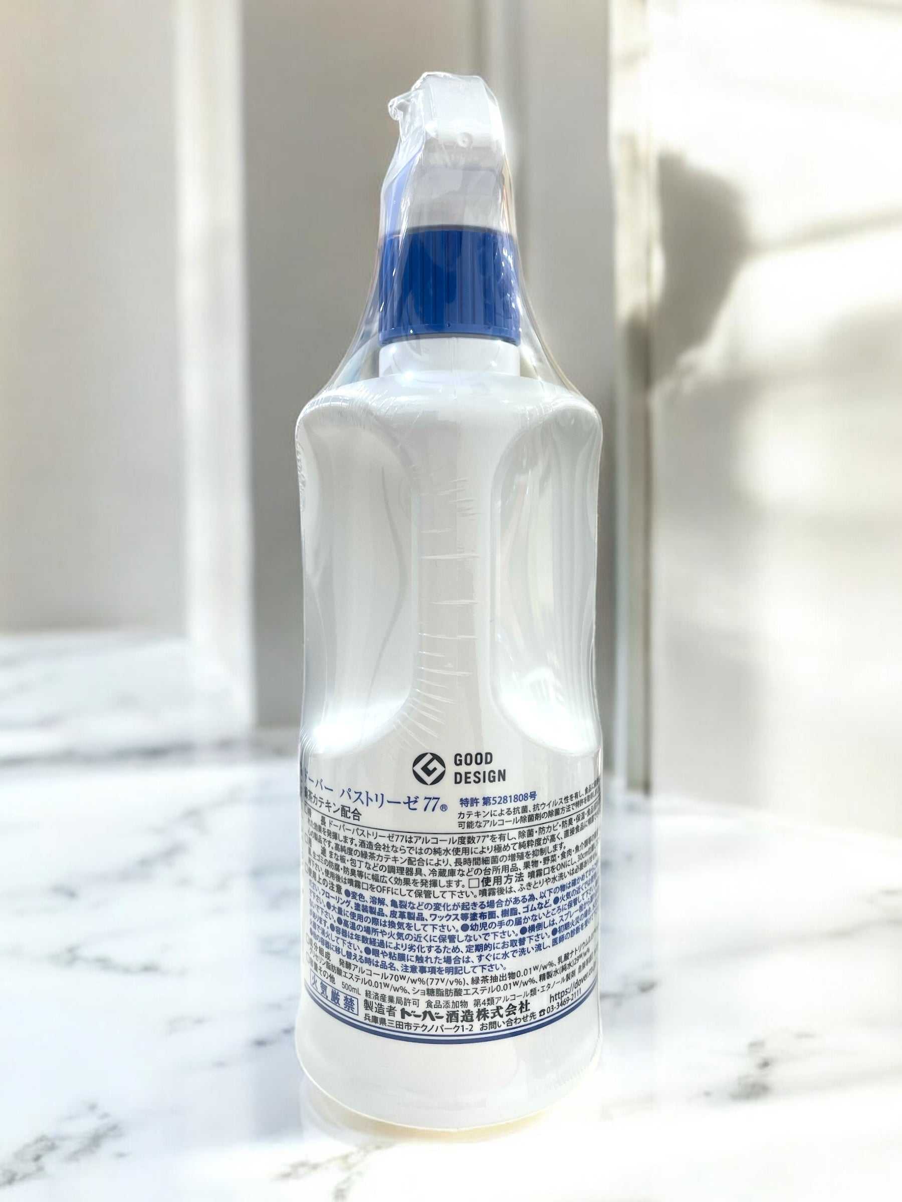 アルコール度数77度を有し、除菌・防カビ・防臭・保湿・食品保存に優れた効果を発揮します。