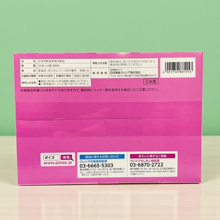 ポイズさらさら素肌 吸水ナプキンは、少量用の40cc吸収で快適なつけ心地を実現。瞬時にニオイを消臭し、さらさらの素肌感が続くため、一日中自信を持って過ごせます。22枚入りが4袋セットでたっぷり使えて経済的。軽やかでムレにくい設計だから、毎日のケアに最適です。