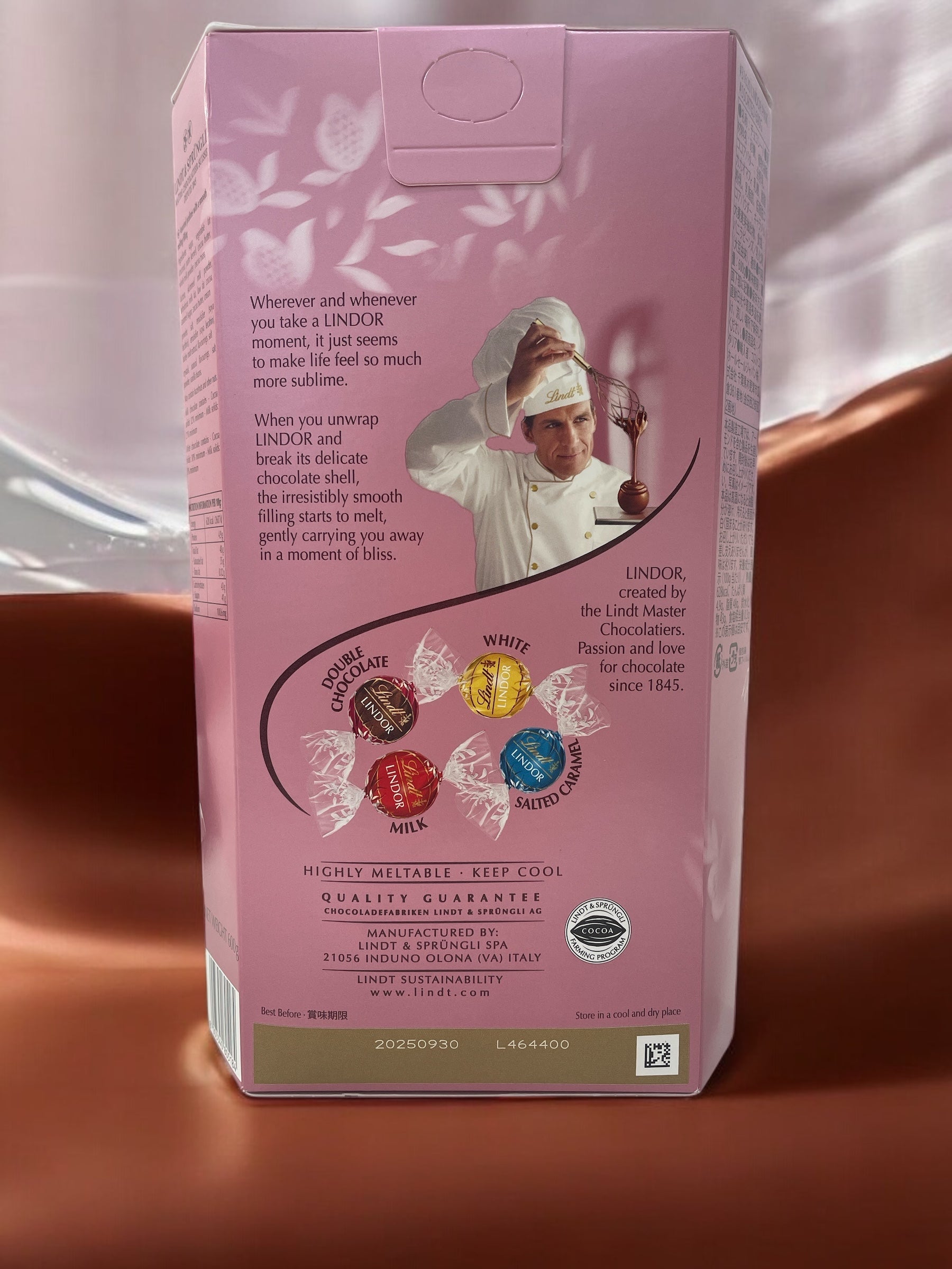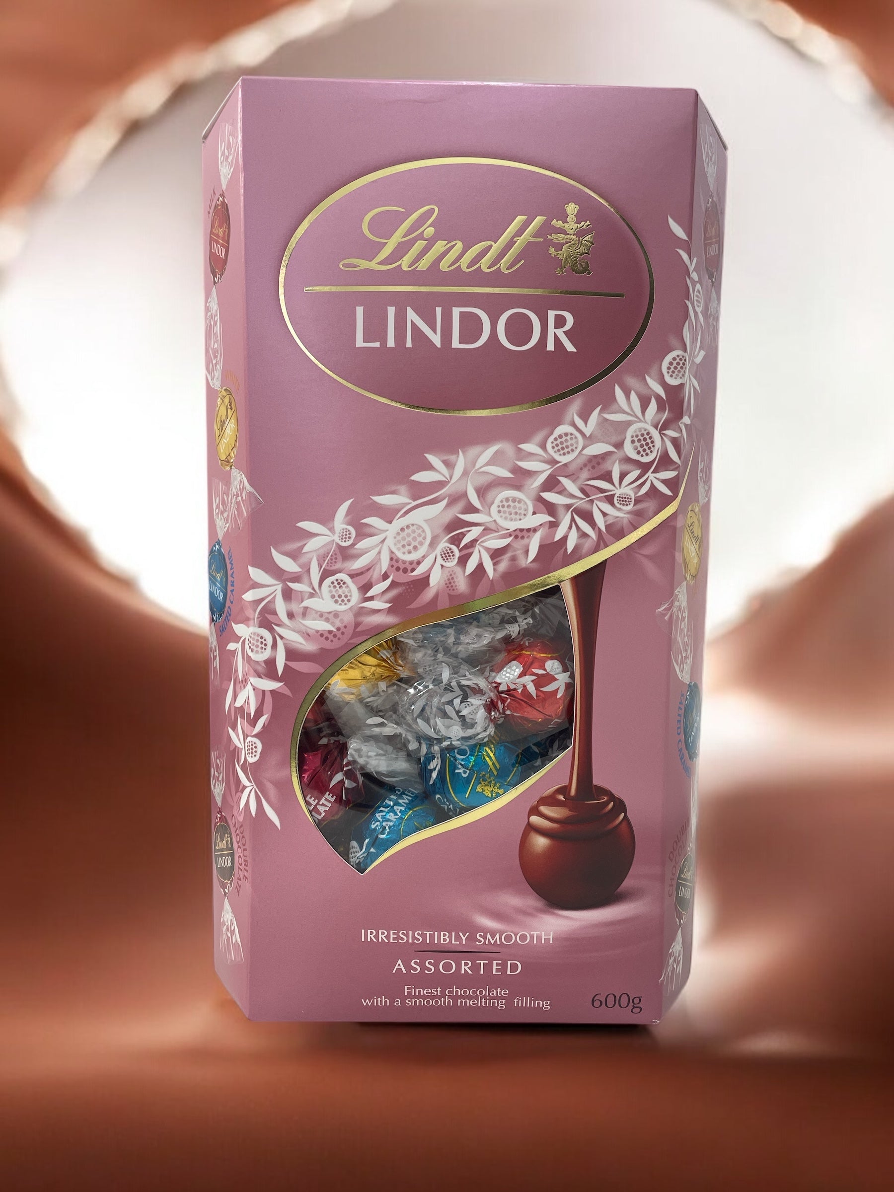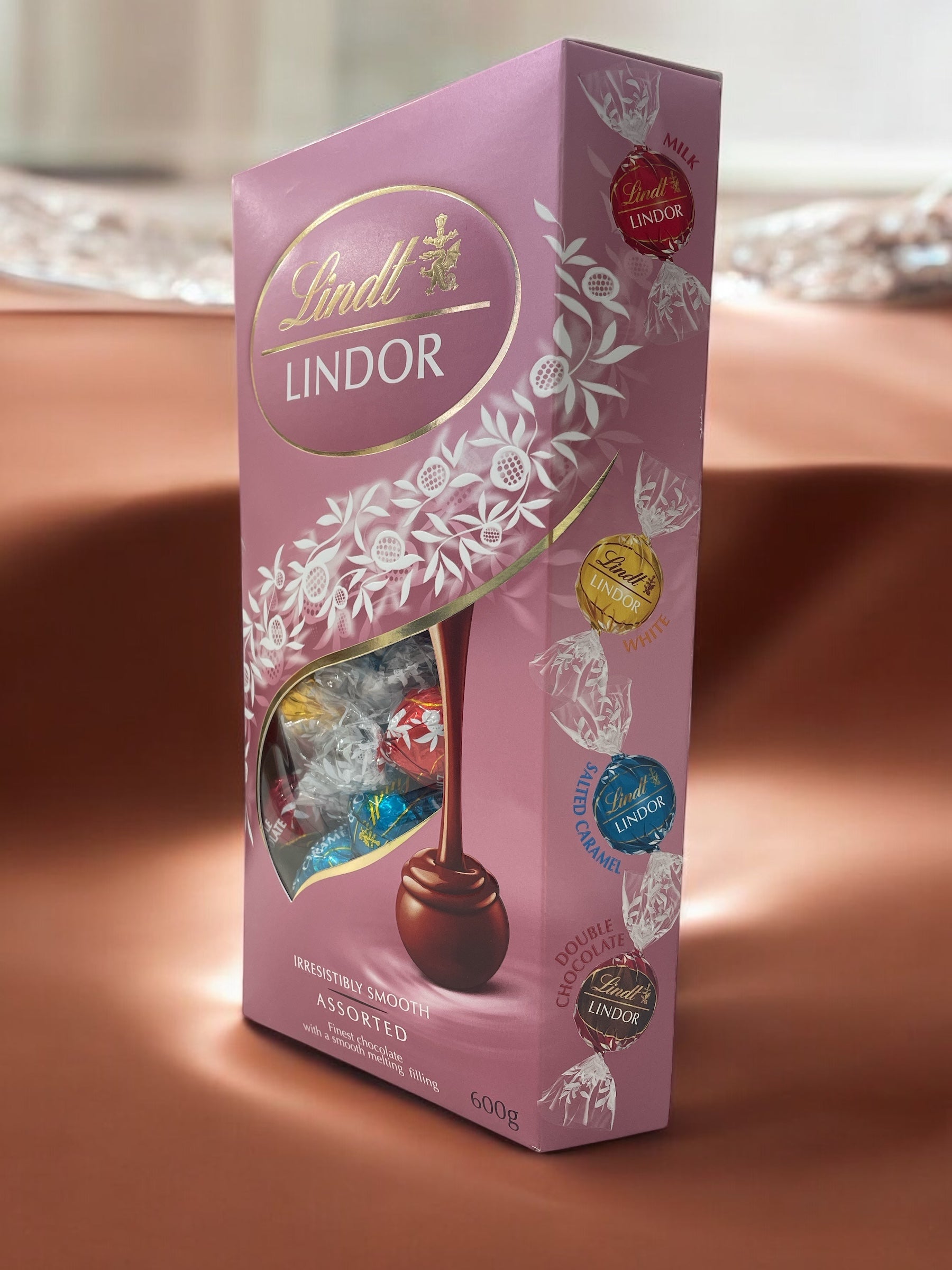 可愛らしいピンクのアソートは、リンツの人気フレーバーを厳選!ミルク、ホワイト、ソルテッドキャラメルに、濃厚なダブルチョコレートを加えた4種