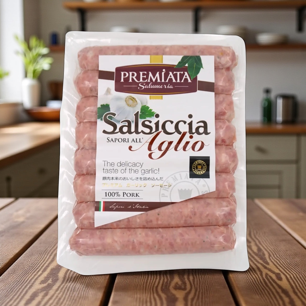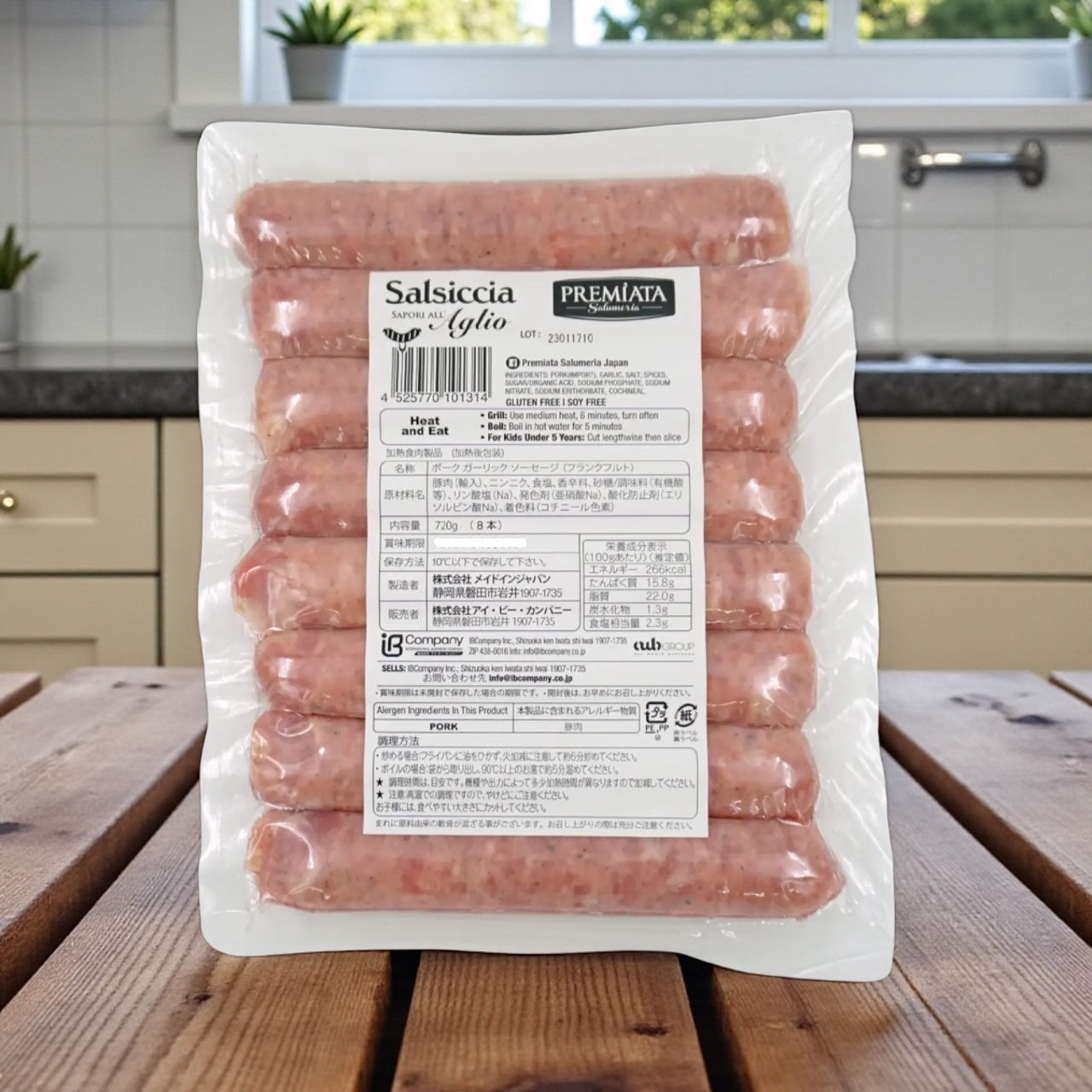ガーリック香る本格ソーセージ。1パック720gに8本のジューシーなサルシッチャを詰めました。濃厚なにんにくの風味が特徴で、焼いても茹でても香ばしく仕上がります。朝食やメイン料理、おつまみまで幅広くお楽しみいただけます。加熱調理でより一層風味が引き立つ、食卓を彩る一品です。