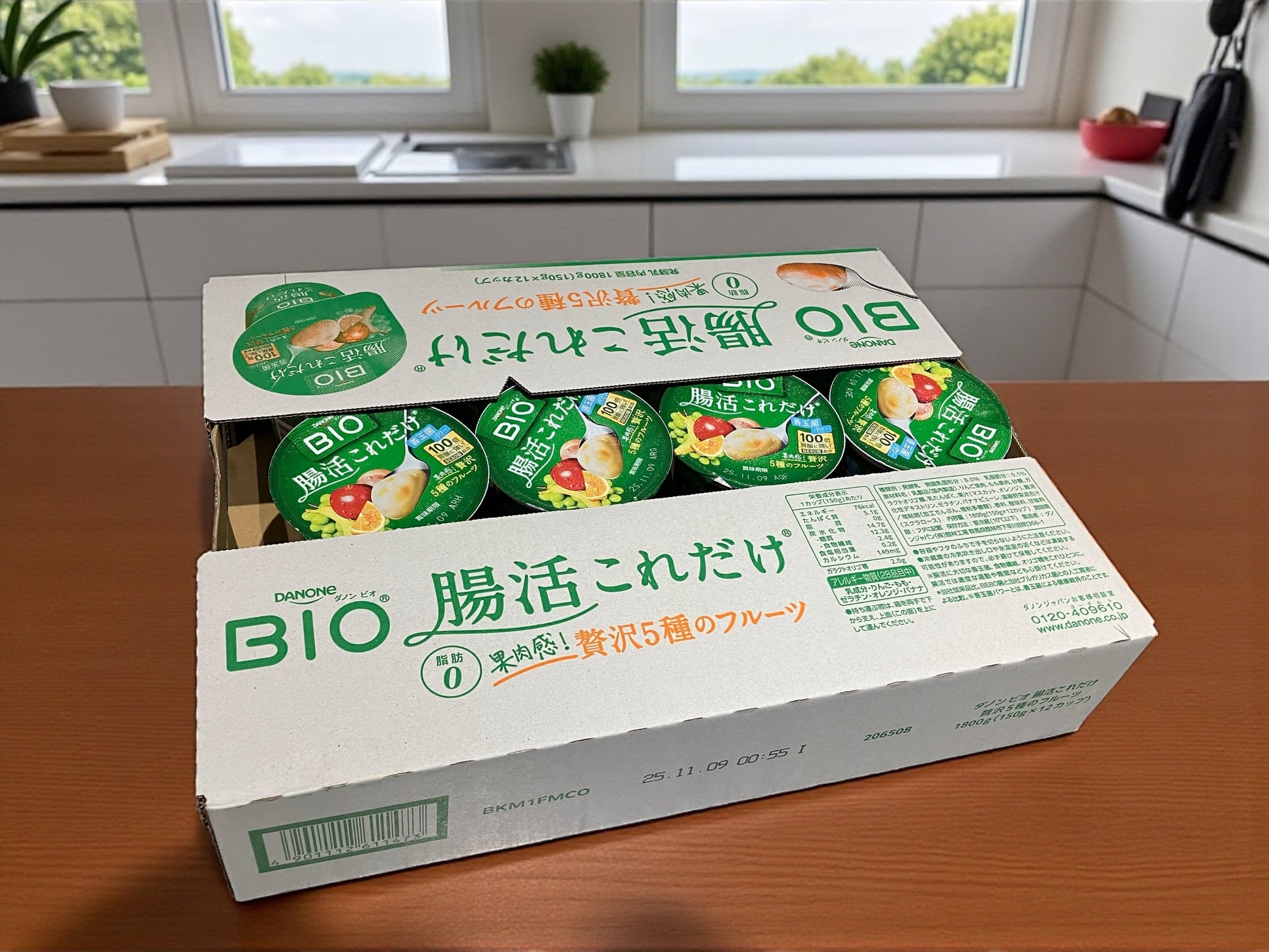 胃酸に強いBIOのBE80菌が腸まで届き、腸活をサポートします。りんご、もも、マスカット、オレンジ、バナナの5種類のフルーツを使用し、ゴロっとした贅沢な果肉感が楽しめます。脂肪ゼロで美味しく、健康的な毎日にぴったりの冷蔵ヨーグルトです。150g×12個入りで、続けやすいセットです。
