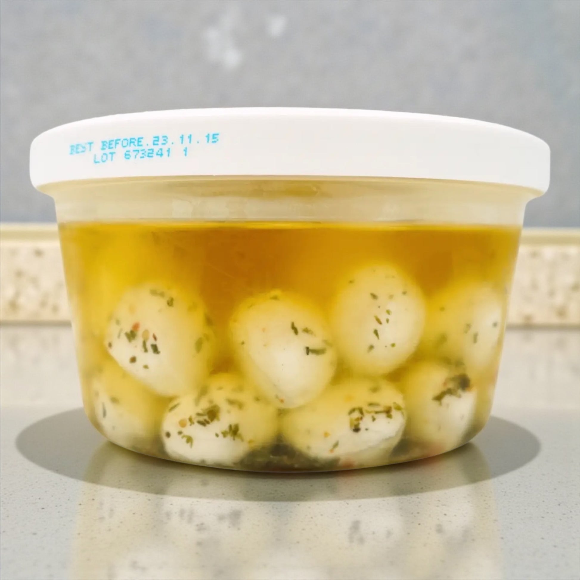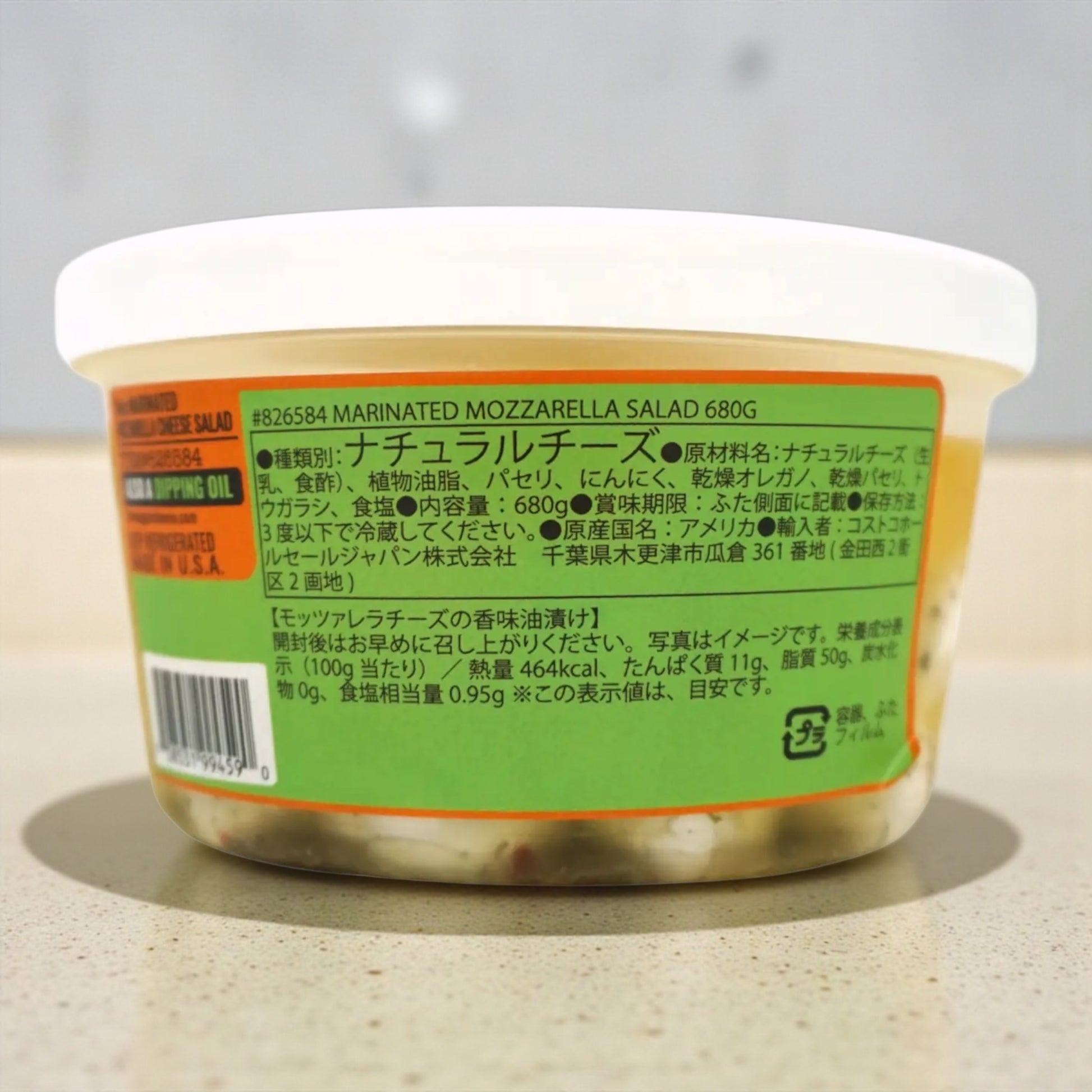 フォルマッジオのモッツァレラチーズマリネは、なたね油ベースの香味油に漬けられたひとくちサイズのチーズ。ガーリック、バジル、パセリの香りが心地よく、モッツァレラ本来のクセのない上品な味わいを引き立てます。特徴的な弾力のある食感と、生乳由来のほのかな塩気が心地よく、そのままでも、サラダやカルパッチョなどの食材と組み合わせても活躍します。アメリカ産の高品質なモッツァレラチーズ製品を専門とするフォルマッジオブランドの輸入品です。680g入り