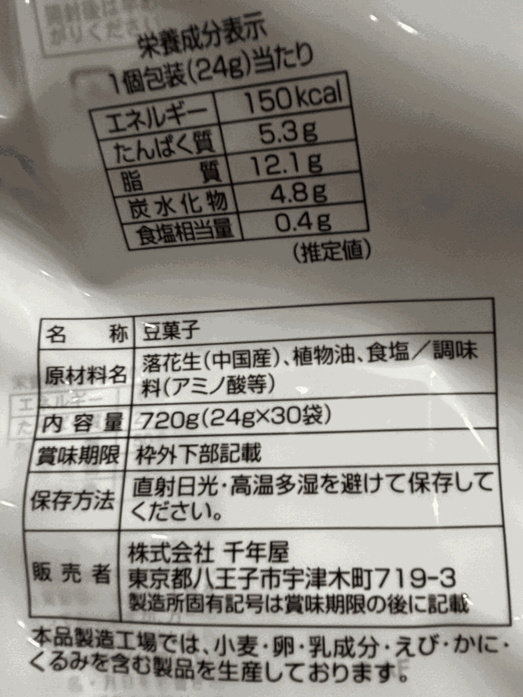 千年屋 揚げ塩 落花生 24g x 30袋入り