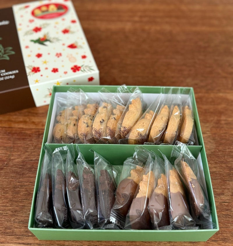 冬季限定の《季節限定》ホノルルクッキー ホリデーボックス WINTERは、チョコレートチップ、カナッフル、トリプルチョコレートなど人気の4種類が詰まった4種類×5個ずつの個包装で20枚入りのアソートボックスです。贅沢な味わいが楽しめるこのセットは、大切な人へのプレゼントにもぴったり。季節感あふれるパッケージで、冬のギフトシーンを華やかに彩ります。