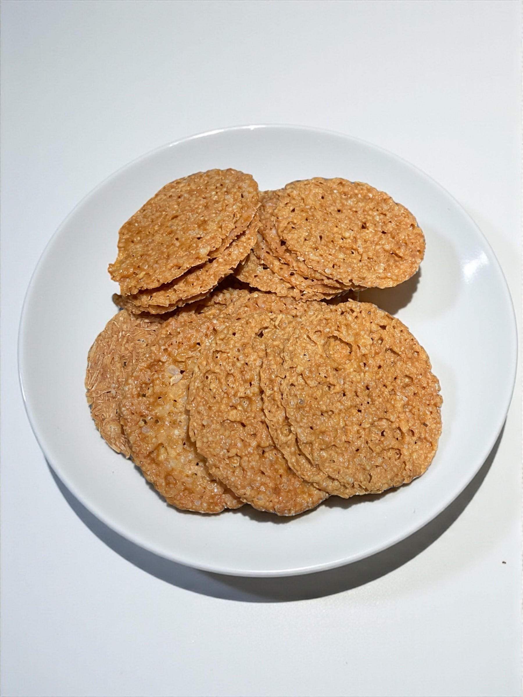 パルメザンチーズの香ばしさをそのままクリスプに仕上げた、チーズ好きのための新しいおやつです。塩辛い風味とパリパリとした食感が一度食べたら止められません。ワインやビールのお供にも、そのままのおやつにも最適。ベーカリーコーナーで見つけた隠れた逸品を、ぜひ試してみてください。4枚ずつの小分け販売です。