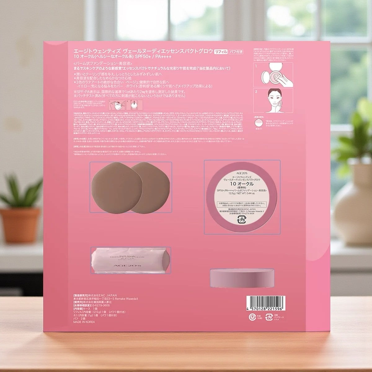 AGE20'Sのヴェールヌーディ エッセンスパクトは、韓国発のリチュアルビューティーブランドが手がけるコンパクトファンデーション。美容液配合のなめらかなテクスチャーが肌に密着し、悩みをカバーしながら光彩のあるツヤ肌へ導きます。空ケース、リフィル、ミニサイズがセットになっているため、持ち運びやお直しに最適。「私の中の美しさ」を引き出す、心と体に活力をもたらすビューティーリチュアルをお楽しみください。