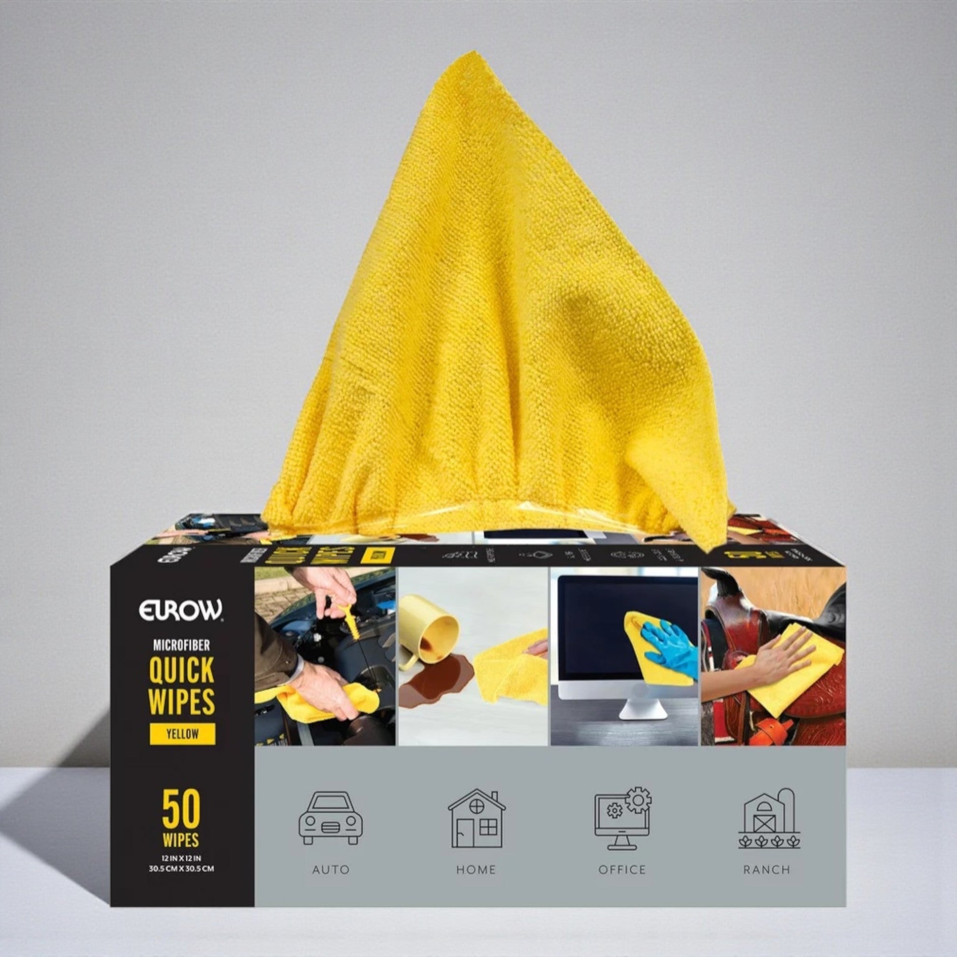 EUROW マイクロワイプは、50枚入りの高性能クリーニングクロスです。マイクロファイバー素材が汚れ、ほこり、グリース、オイル汚れを効率的に除去します。研磨剤を含まないため、あらゆる表面に安全に使用でき、家庭から作業場まで幅広い環境に対応します。優れた吸収性と耐久性を備え、洗濯機で洗浄すれば何百回も再利用可能。ペーパータオルの代わりとしても活躍し、経済的で環境にも配慮した選択肢です。便利なディスペンサーボックス入りで、いつでも手軽に取り出せます。