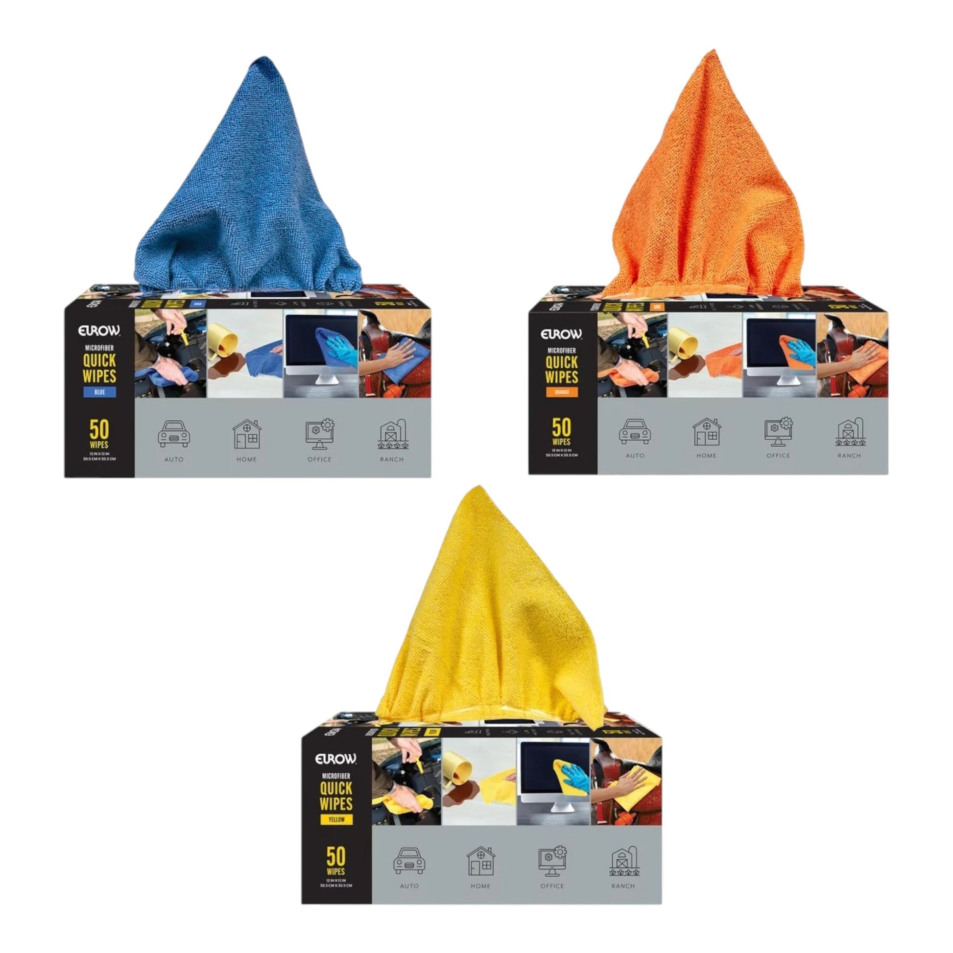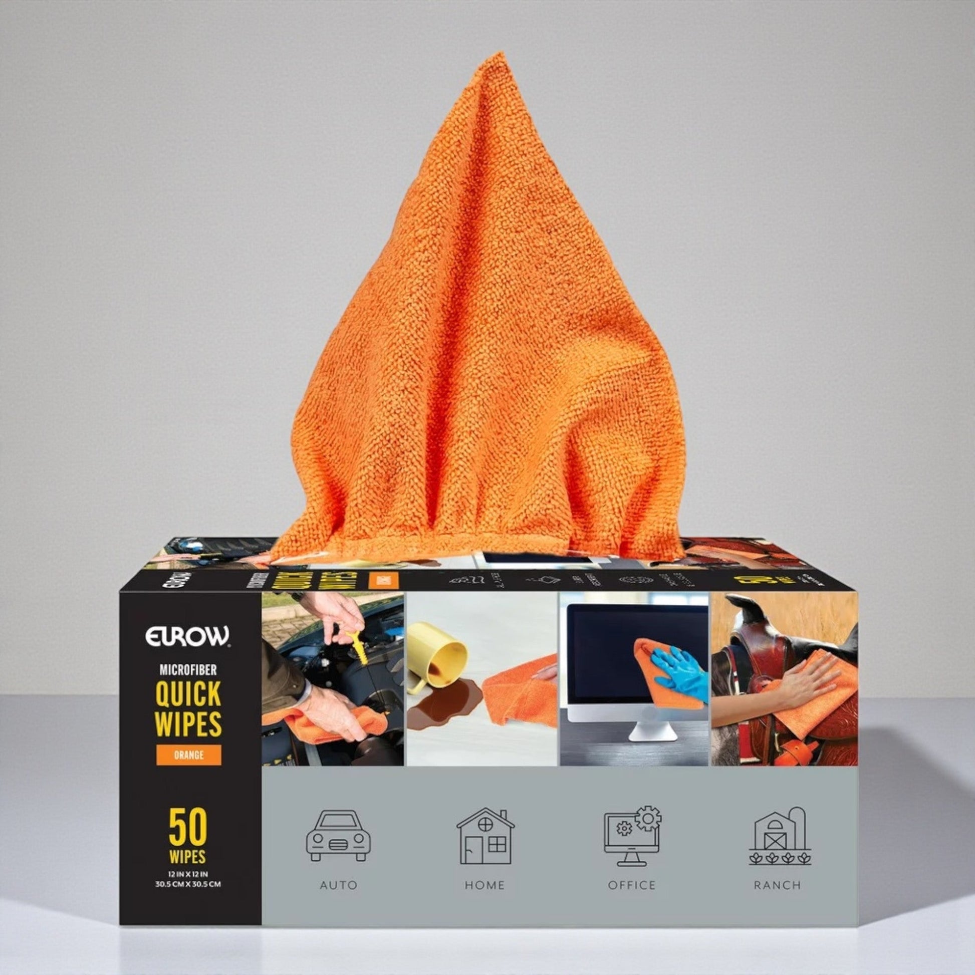 EUROW マイクロワイプは、50枚入りの高性能クリーニングクロスです。マイクロファイバー素材が汚れ、ほこり、グリース、オイル汚れを効率的に除去します。研磨剤を含まないため、あらゆる表面に安全に使用でき、家庭から作業場まで幅広い環境に対応します。優れた吸収性と耐久性を備え、洗濯機で洗浄すれば何百回も再利用可能。ペーパータオルの代わりとしても活躍し、経済的で環境にも配慮した選択肢です。便利なディスペンサーボックス入りで、いつでも手軽に取り出せます。