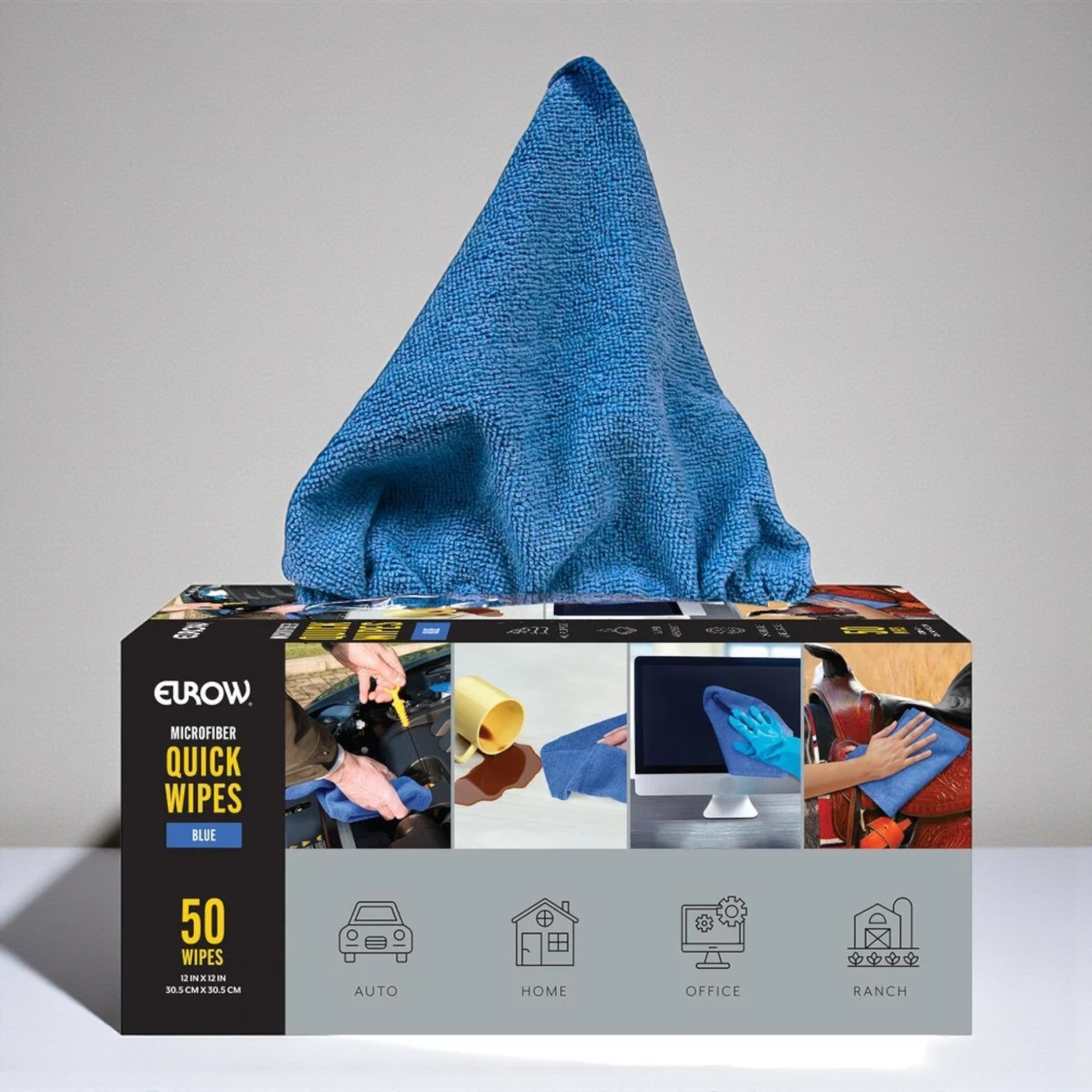 EUROW マイクロワイプは、50枚入りの高性能クリーニングクロスです。マイクロファイバー素材が汚れ、ほこり、グリース、オイル汚れを効率的に除去します。研磨剤を含まないため、あらゆる表面に安全に使用でき、家庭から作業場まで幅広い環境に対応します。優れた吸収性と耐久性を備え、洗濯機で洗浄すれば何百回も再利用可能。ペーパータオルの代わりとしても活躍し、経済的で環境にも配慮した選択肢です。便利なディスペンサーボックス入りで、いつでも手軽に取り出せます。