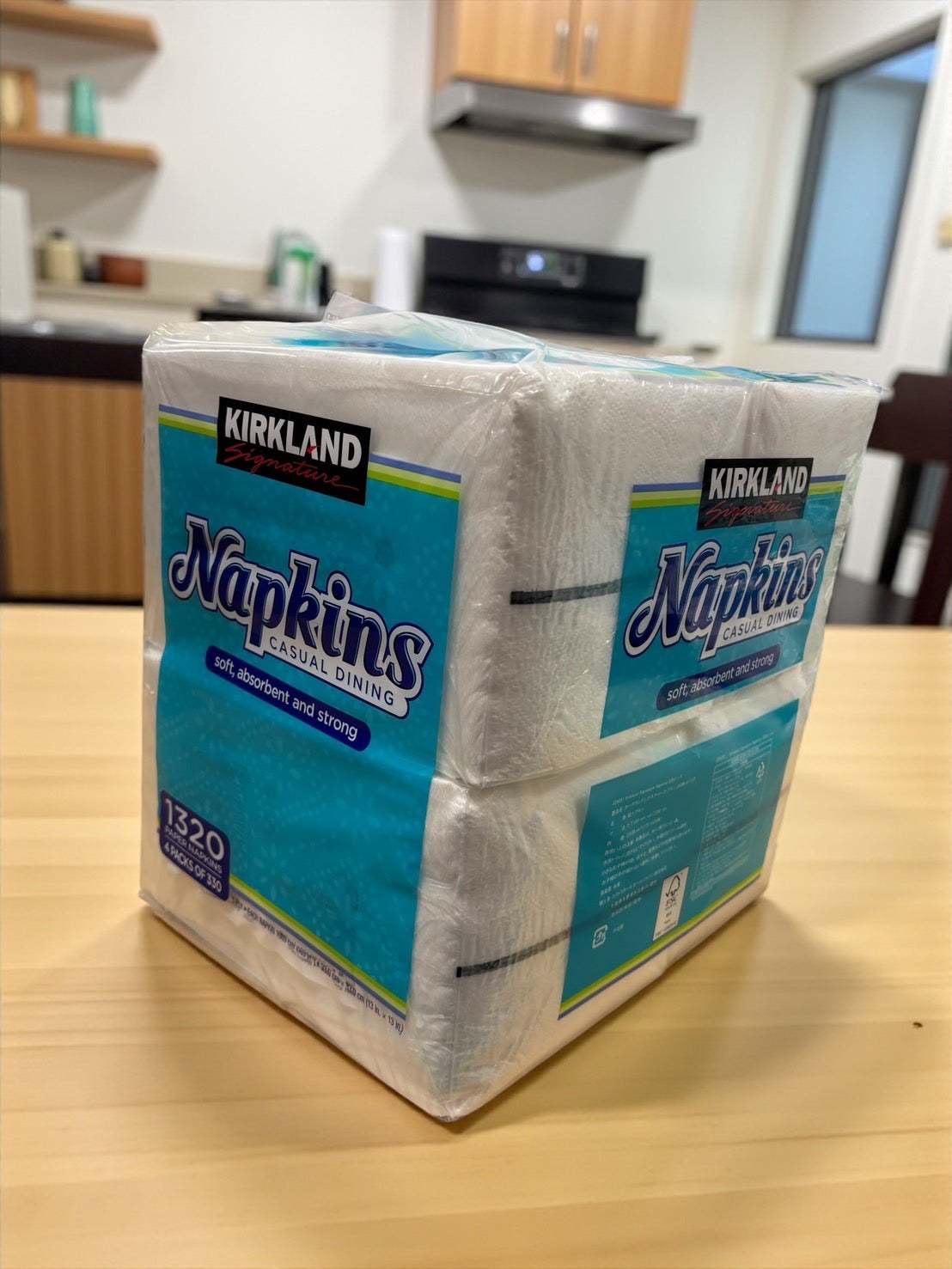 カークランドシグネチャーのペーパーナプキンは、33cm×33cmの使いやすいサイズで、あらゆるシーンで活躍します。高い吸水力と強さ、そして柔らかさを兼ね備えており、レストランやアウトドア、ピクニック、お花見、パーティーに最適です。カトラリーを包んだり、大皿の上に敷いてポップコーンを乗せたり、様々な用途でお使いいただけます。無香料なので、食事の邪魔をせず、どんなシーンにも合わせやすい一枚です。1320枚入りで、頻繁に使用するご家庭やイベント企画にもおすすめです。