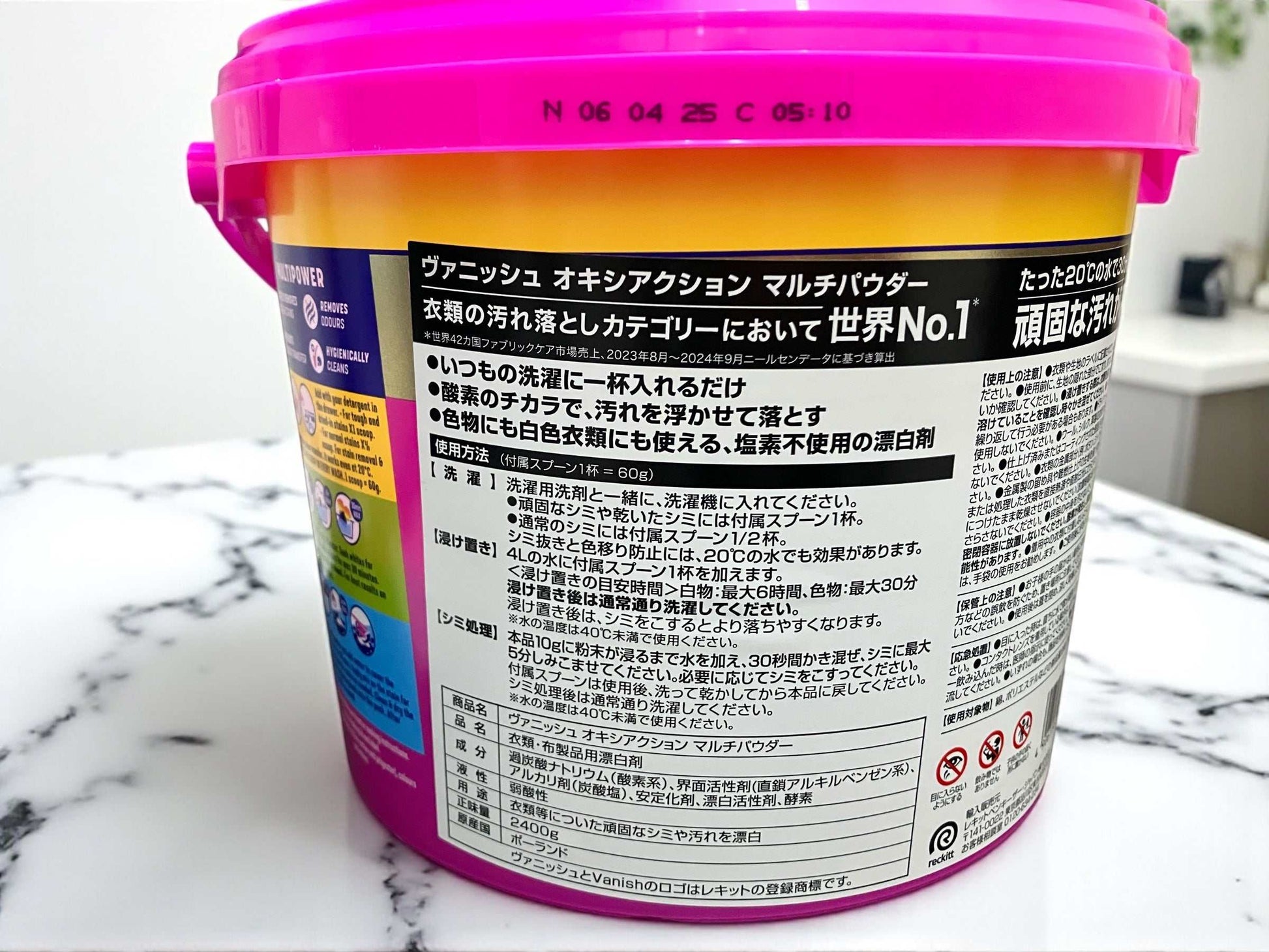 世界No.1ブランド*のVanishパウダーは、いつもの洗濯に加えるだけで強力な酵素の力が汚れをしっかり浮かせて落とします。2.4kgの大容量で経済的。塩素不使用なので色物にも白物衣類にも安心して使え、衣類を傷めずにしみ抜き効果を発揮します。忙しいあなたの洗濯をより簡単で効果的に。